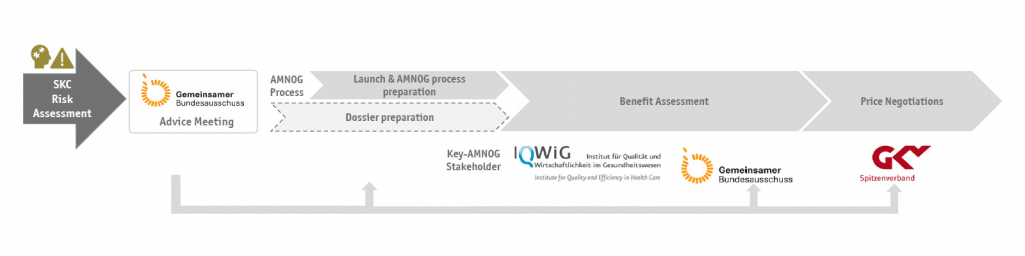 In terms of identifying and valuating all challenges for the client regarding the AMNOG process, a comprehensive risk assessment is the solution. Following this, open questions can be clarified with a G-BA advice, so that specific requirements can be considered in the study planning and AMNOG process preparation. It is crucial to select the questions and formulations strategically so that the G-BA does not take the consultation as an opportunity to make further demands.