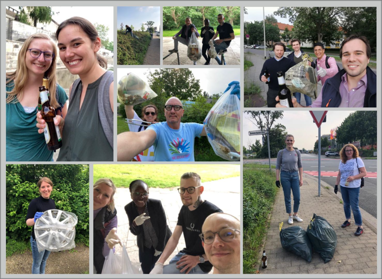Prepared and fully equipped with garbage bags, gloves, tongs and our outstanding SKC team spirit of course, we started off the evening with a group call via our smart phones. Afterwards, we began collecting garbage in our groups in various locations, such as along the banks of the river Ihme, to avoid the waste ending up in the water, or in the more historic but densely populated district of Linden, as well as in more remote but lush vegetated areas such as Hainholz.